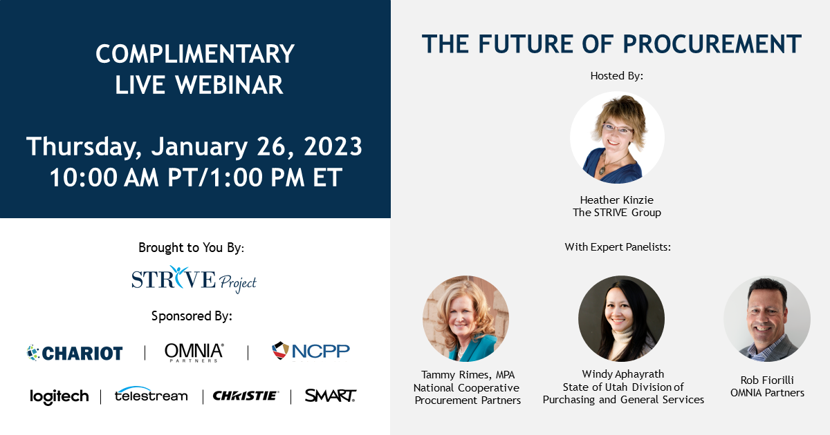 In this on-demand webinar, Heather Kinzie, Chief Operating Officer of The STRIVE Group, presented foundational information about the procurement and contracting processes. She engaged panelists in a lively discussion to ignite ideas and bust through myths.